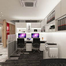 A law firm design that reflects the spirit and vision of a group of young lawyers. The strong colour of the logo is balanced with soft touches of wood textures, creating a very calming and friendly environment for the staff and guests.